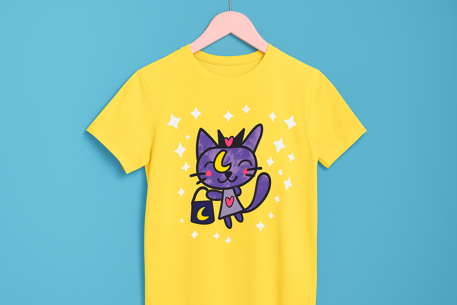 Brilla como la luna con esta adorable camiseta de la Gatita Lunar, un diseño original de Nicole lleno de magia y ternura. Con su vestido y su bolsita con luna, esta gatita invita a soñar entre estrellas ✨. Perfecta para espíritus curiosos y amantes de lo celestial.